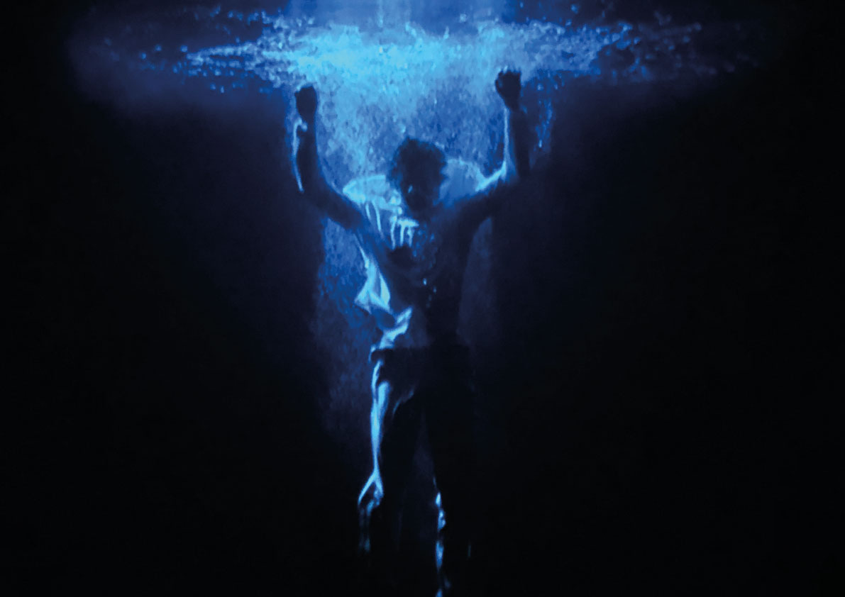 Ascension infatti, è una ripresa rallentata di una caduta nell’ acqua di un corpo umano visto frontalmente, che dopo fluttuazioni e galleggiamenti, affonda nel profondo dell’abisso scuro.