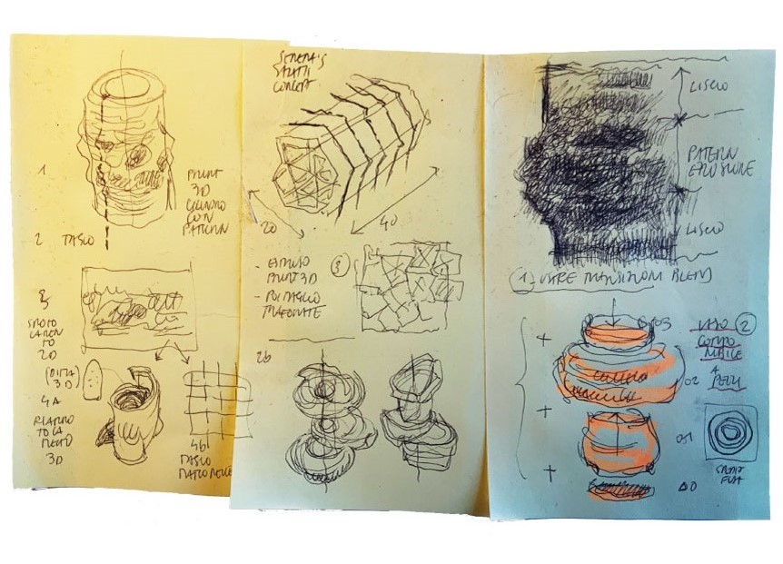 EROSIONS è un progetto inserito nel ciclo Digital Artisan, workflow di Ricerca e Sviluppo dei processi ceramici e smaltatura a mezzo di passaggi PHYGITAL di ingresso e uscita dall’ambiente virtuale e digitale.
