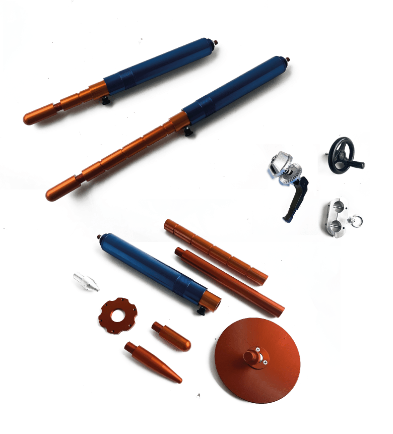 Il sistema è dotato di un intero kit di piedi interscambiabili in funzione del tipo di suolo (roccia, sabbia, terra).